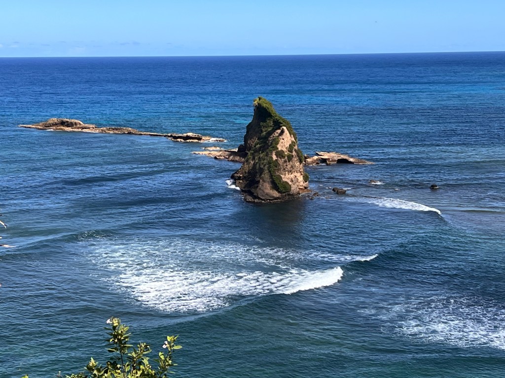 Our next stop was Coral Reef restaurant in Calibishie which is on the North East side of the island. We had a beautiful view of the Atlantic Ocean along with views of Guadeloupe. We were offered a few dishes. Chicken, shrimp, ribs and provisions. Most of us got the chicken; it was 2 full chicken wings that had spent time in the crockpot so the meat fell right off the bones. The provisions consisted of yellow rice, potato salad that everyone loved, greens, and slices of ???and black beans. We cleaned our plates!