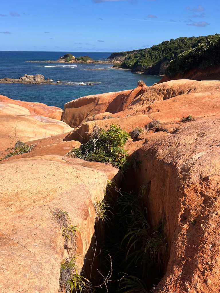 Next stop was Red Rocks. It was a beautiful hike down through a muddy jungle covered trail while you hear the crashing waves and suddenly you break through the foliage unto the red rocks that you would find in the State of Utah except surrounded by the Atlantic ocean and her refreshing breeze. The teenagers spent most of their time trying to get a picture of the waves crashing behind them. Of course every time they looked away crash and more crash.