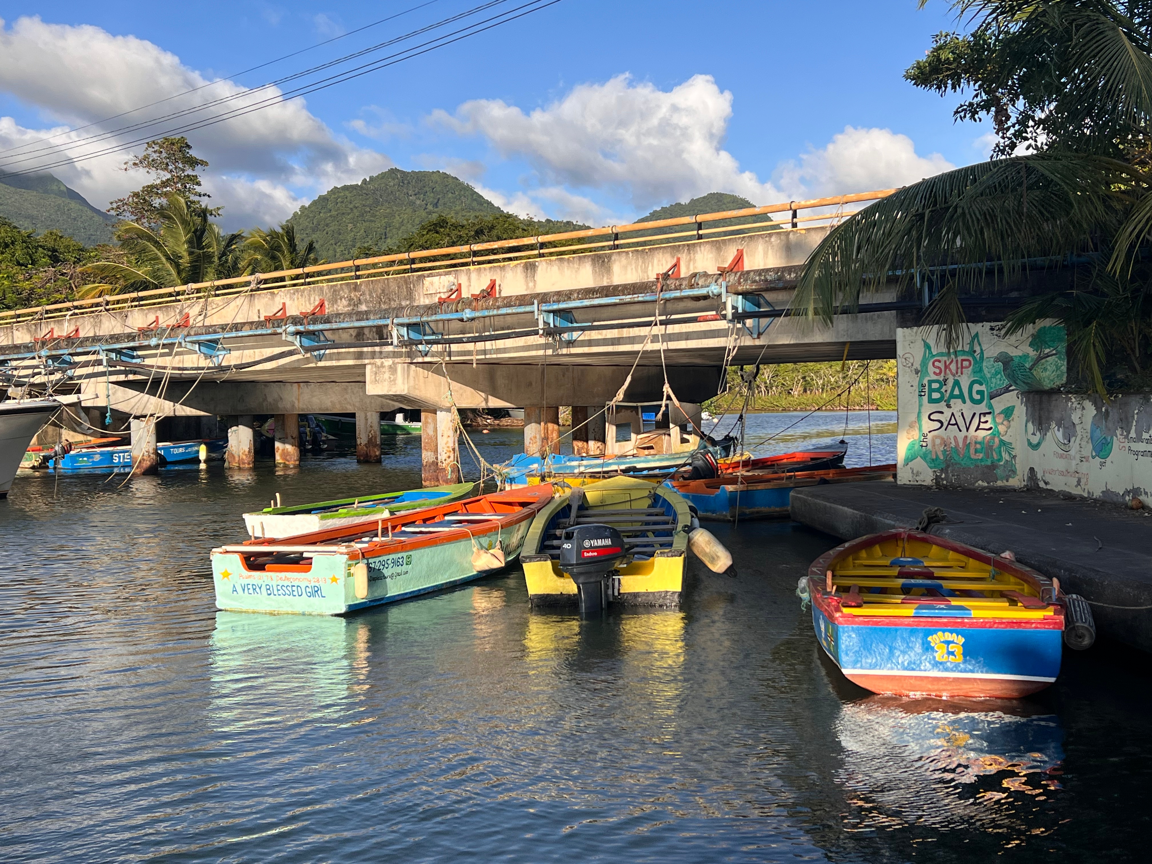 Our day started with Lawrence on his boat “Lawrence of Arabia”, going boat to boat, picking all of us up and taxing us to shore. SV Ego Domi, SV, Windfall, and SV Seashell which included six adults, four teenagers, a preteen and two littles piled into a van for a day of exploration.  A tour was arranged to visit a waterfall, a chocolate factory, red rock and an Atlantic side lunch spot.